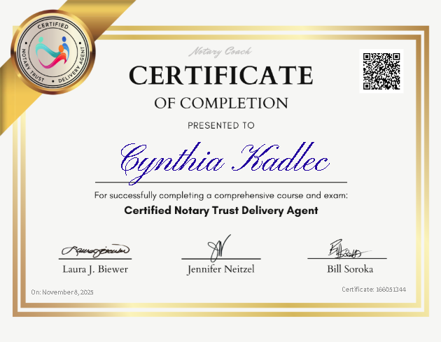 “Abundance Mobile Notary made our estate planning process so much easier. Cynthia was professional, kind, and patient with our questions. We couldn’t have asked for a smoother experience.”