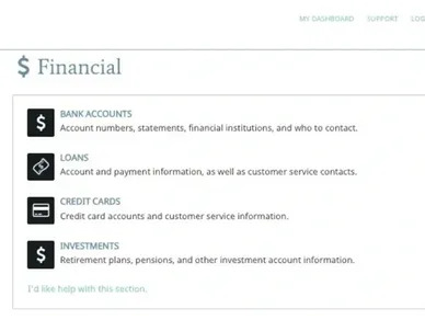 The Legacy Vault provides a secure and organized way to store and manage your financial information, including bank accounts, loans, credit cards, investments, and more. By keeping all your financial details in one encrypted location, you ensure that your loved ones have easy access to critical information when they need it most. Whether it’s tracking assets, liabilities, or key account details, this feature helps streamline financial management and ensures a smooth transition of responsibility in case of an emergency. With The Legacy Vault, your financial records are always protected and accessible to those who matter most.
